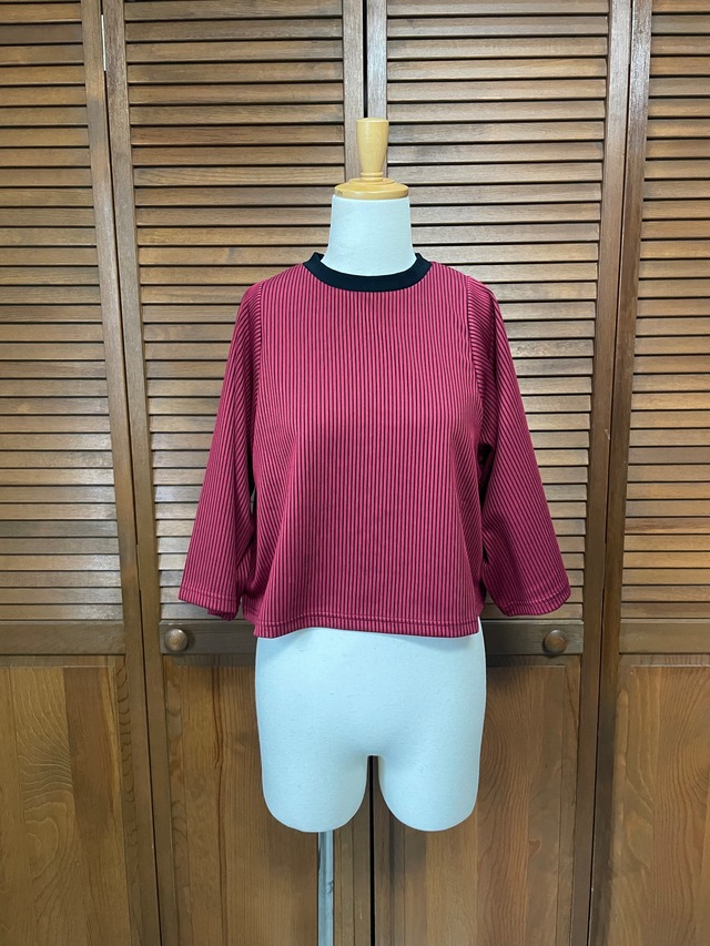 バイカラーリブカットソー レッド