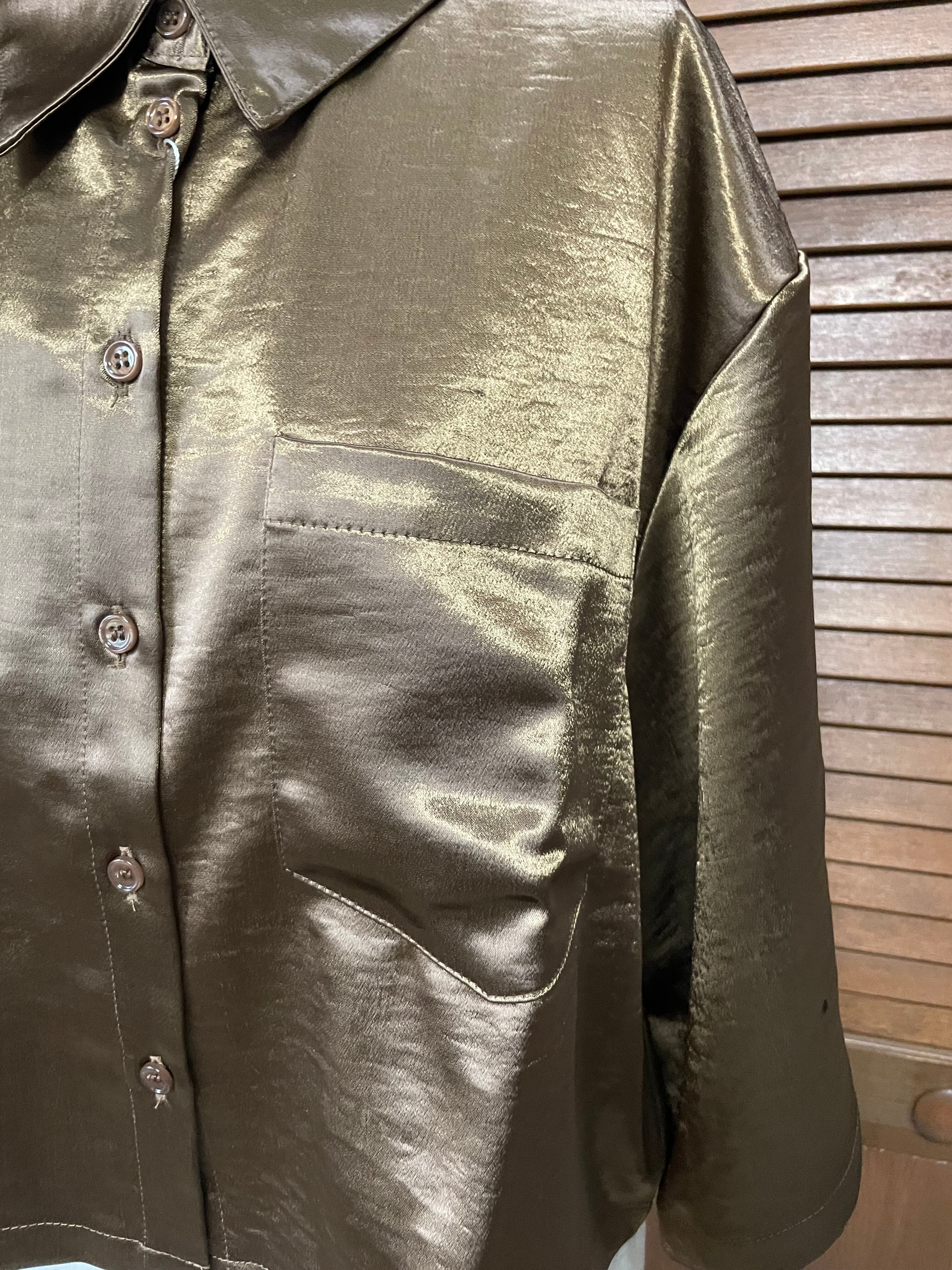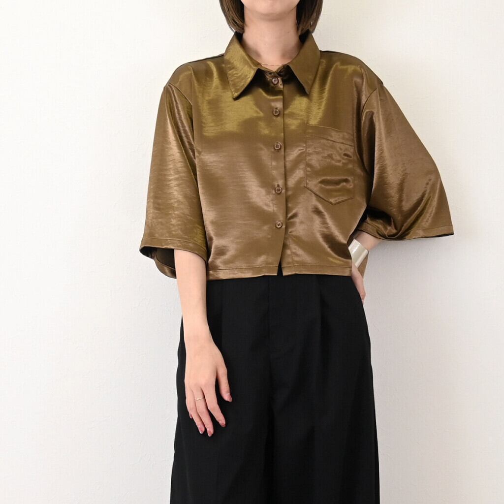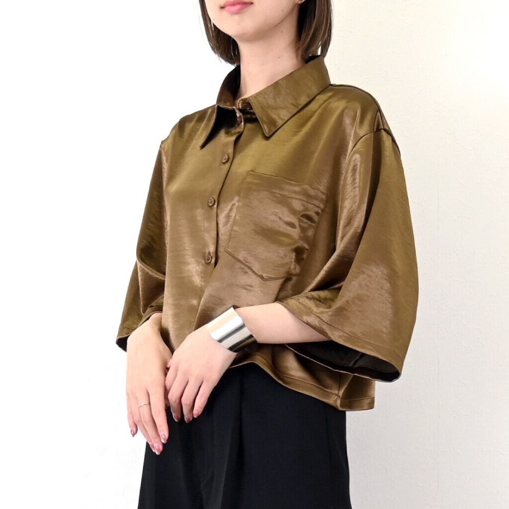 サテンボックスシルエットシャツ ブラウン