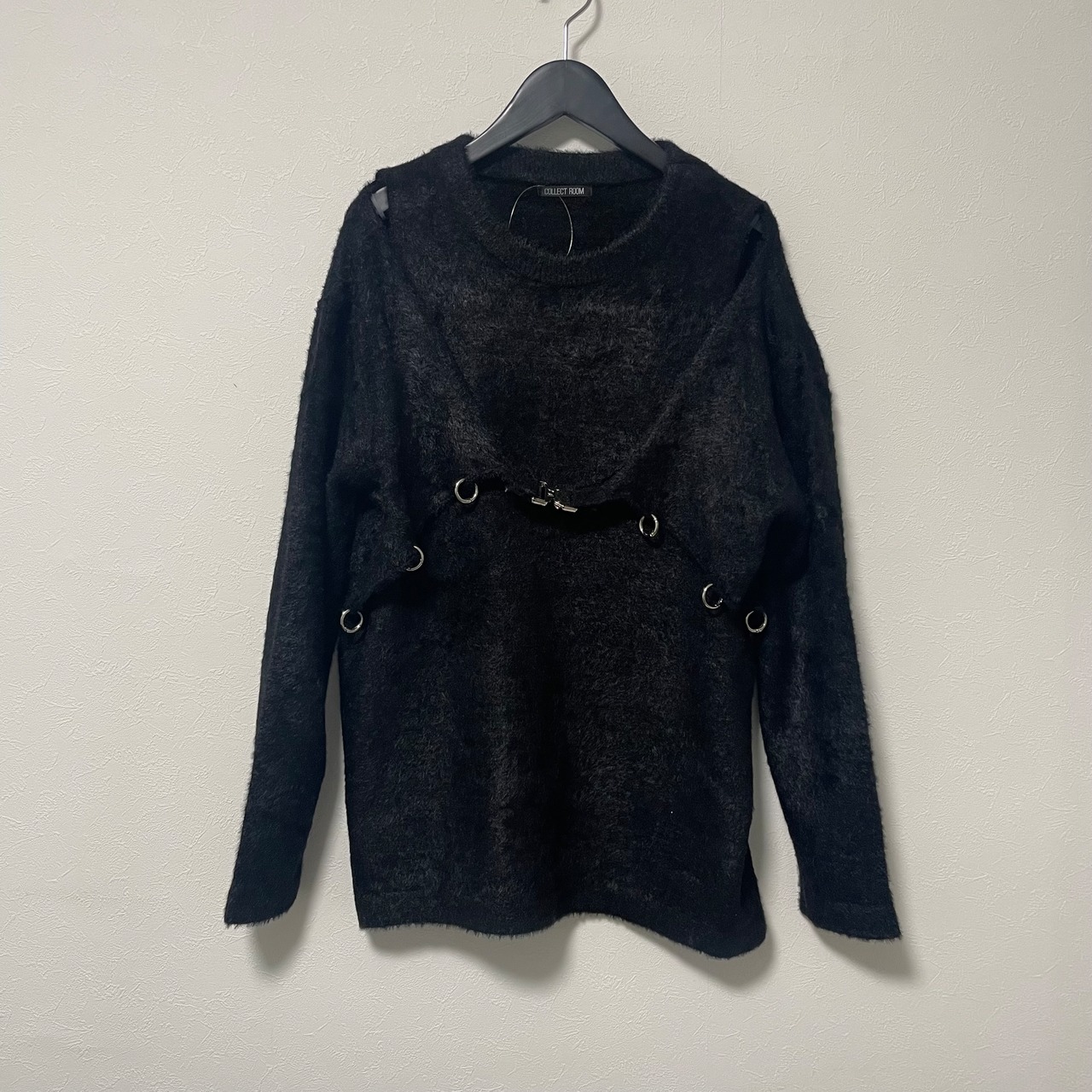 Off-shoulder design shaggy knit tunicーBLACK