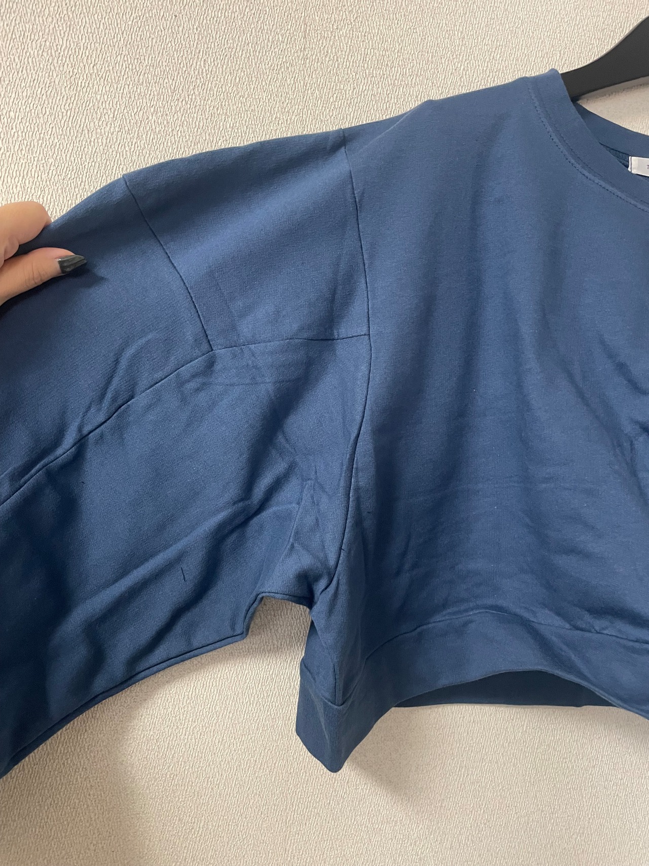 ボリュームスリーブミニ裏毛トップス ネイビー